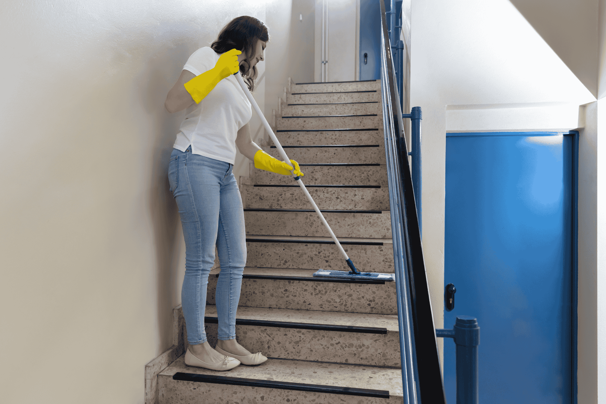 Reinigung von Treppen, Geländern und Gemeinschaftsflächen.